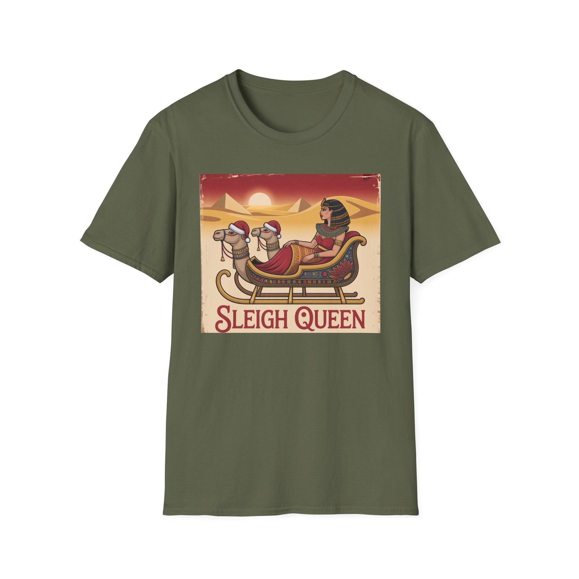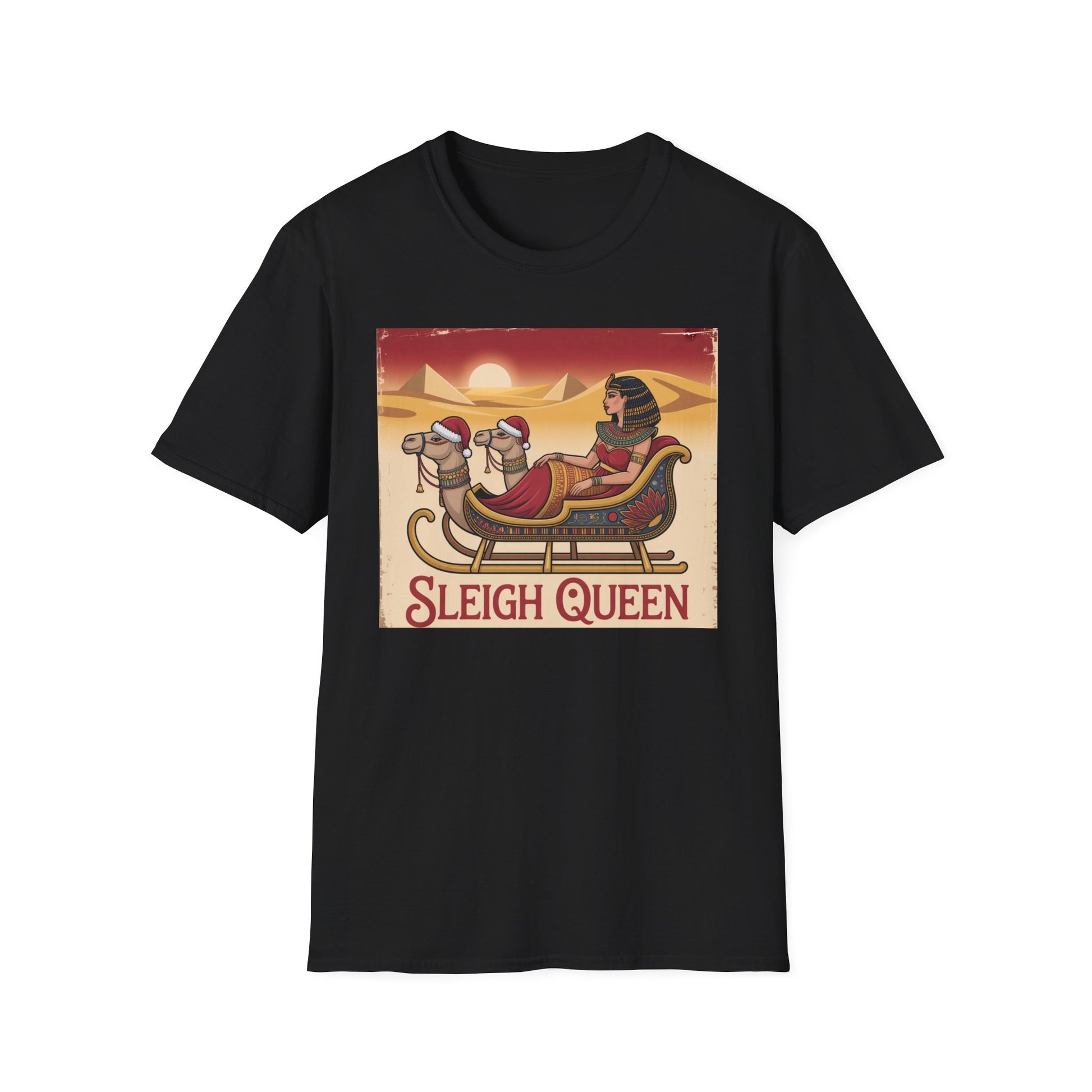 Bow down to the original Sleigh Queen. This regal tee features Cleopatra riding a golden sleigh across the sands of the Nile. Equal parts glam and giggle, it’s the perfect Christmas gift for those who rule their own empires - or group chats.